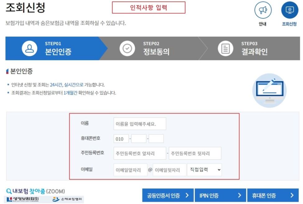 내보험 찾아줌 조회 방법 숨은보험금 찾기