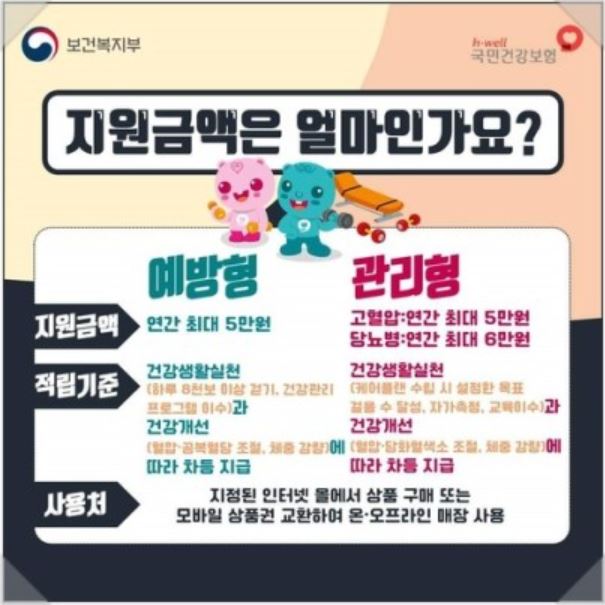 예방형의 경우 관리에 성공하시면 최대 5만원, 관리형의 경우 최대 6만원을 지원받을 수 있습니다.