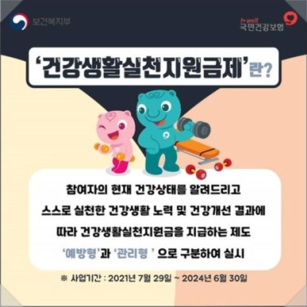 보건복지부와 국민건강보험공단이 시행하는 사업으로 건강 관리를 하는 국민에게 정부 지원금 인센티브를 제공하는 사업입니다. 한마디로 건강관리를 하면 주는 정부 보조금입니다.