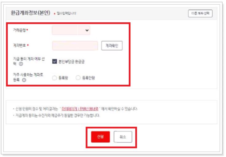 8. 환급계좌정보 정보를 입력하고 신청버튼을 클릭합니다.