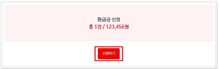 5. 환급급 건수와 금액을 확인하고 신청하기 버튼을 클릭합니다.