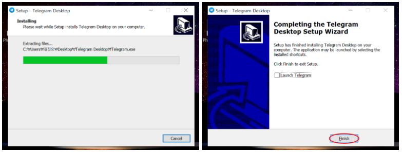 자! 텔레그램 pc버전 다운로드가 끝났는데요 한번 실행해보도록 할게요!