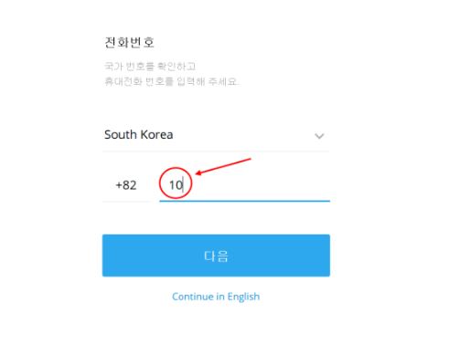 전화번호를 입력하는 화면이 나올거에요! 여기서 주의하실 점은 +82라고 국가번호가 쓰여져 있기 때문에 전화번호는 010이 아닌10부터 적어주시면 된답니다.