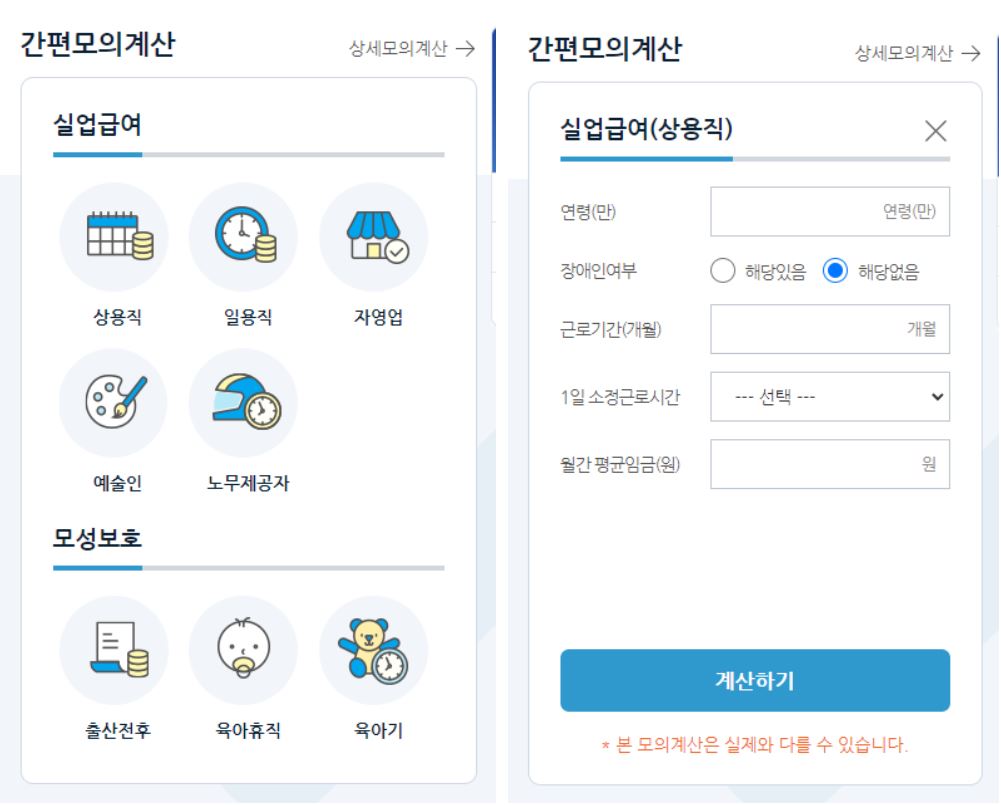 내 실업급여 모의계산 해보기