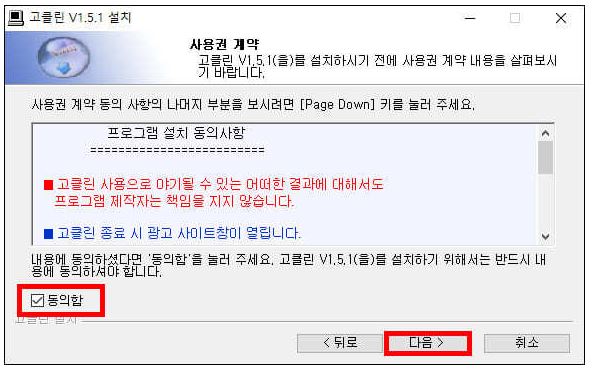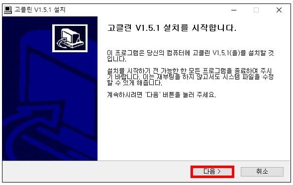 2. 다운로드한 고블린 설치 파일을 실행하여 고클린을 설치합니다.