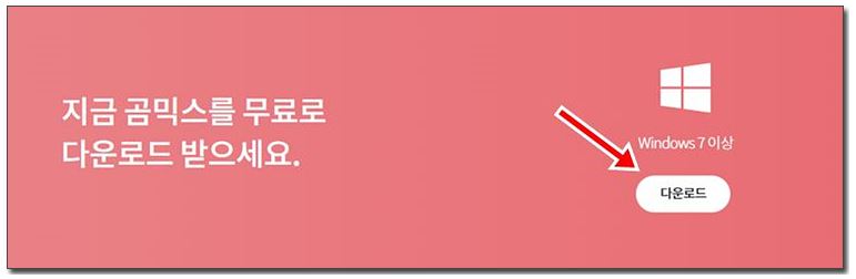 그러면 아래와 같은 곰믹스 다운로드 페이지가 나오고 여기에서 다운로드 버튼을 누르면 곰믹스 설치파일을 다운로드할 수 있는 팝업이 나옵니다.