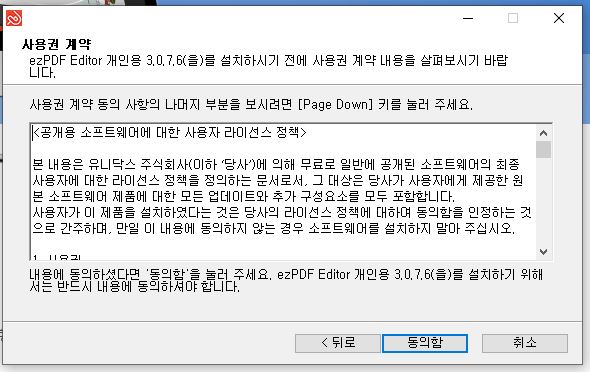 6. 사용권 계약 창이 뜨면 내용을 확인 후 “동의함”을 클릭합니다.