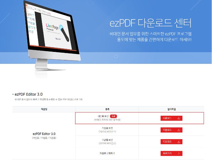 3. ezPDF Editor3.0 다운로드 센터에 들어와서 ezPDF Editor3.0 "개인용 버전에 다운로드"를 클릭합니다.