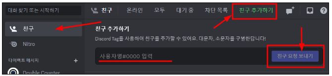 - 추가할 친구 계정명(사용자명 #0000) 입력 후 친구 요청 보내기를 클릭합니다.