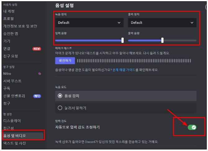 - 입력 감도: 마이크에 전달되는 나의 음성 감도