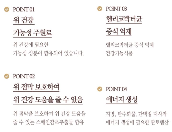 트루포뮬러 위톱 효능에는 위 점막 내에 헬리코박터균 증식을 억제하고 위 점막을 보호하는 효능이 있습니다. 이 효능은 스페인감초추출물의 효능인데요, 스페인감초추출물은 식약처로부터 위 점막 내 헬리코박터균 증식 억제, 위 점막을 보호한다는 기능성을 인정받은 원료입니다. 식약처 인증을 받았다는 것은 안전성이 인정된 기능성 원료로 보장 받은 것이기 때문에 믿고 복용할 수 있을 것 같습니다.
