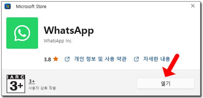 왓츠앱 설치가 완료되면 열기를 눌러주세요.