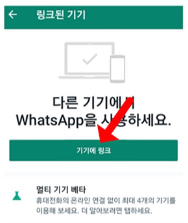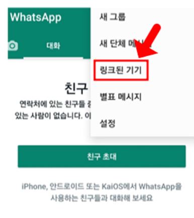 스마트폰에서 실행된 왓츠앱 상단에 톱니바퀴 모양의 설정을 클릭하고 링크된 기기를 선택해 줍니다.
