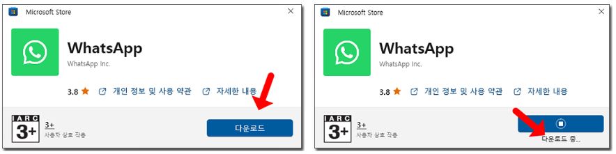 왓츠앱 다운로드 창이 열리면 다운로드 아이콘을 클릭해 주세요. 자동으로 다운로드가 시작되고 왓츠앱 설치가 진행됩니다.
