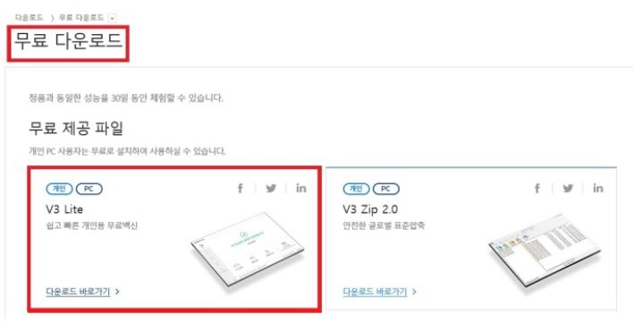 🔹 V3 Lite 무료백신 다운로드 바로가기 🔹