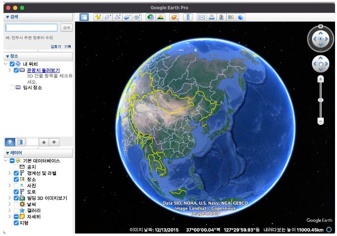 5. 아래 화면이 구글어스 프로그램을 실행한 화면입니다.