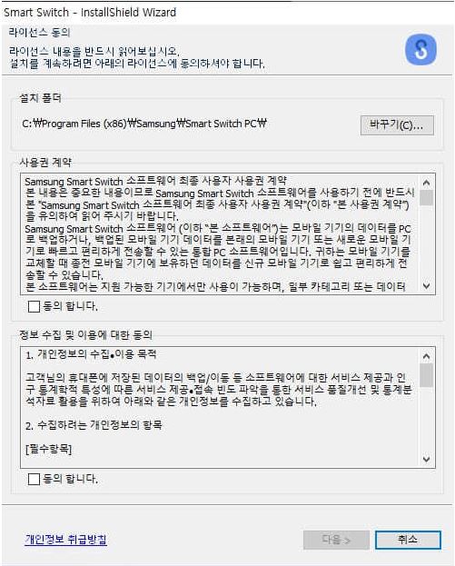 상단 삼성 스마트 스위치 다운로드 바로가기로 이동 후 실행해서 설치를 진행하면 됩니다.
