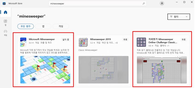 - 지뢰찾기의 영문이름인 'mineseeper'을 검색합니다.