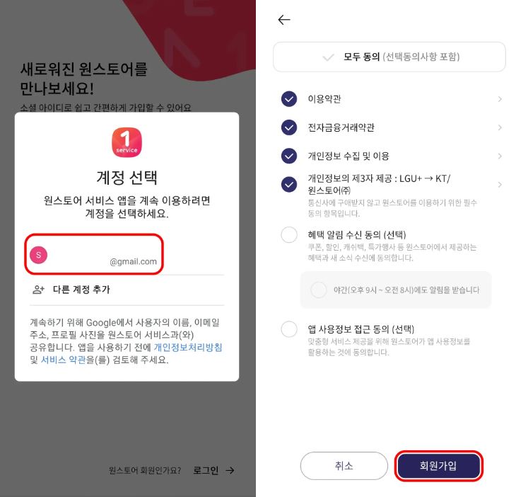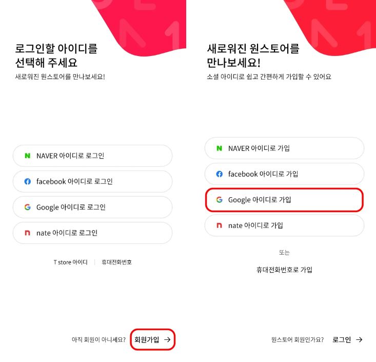 원스토어 회원 가입하기