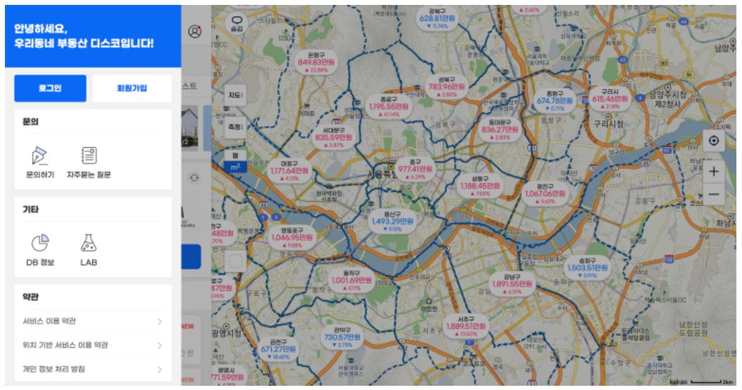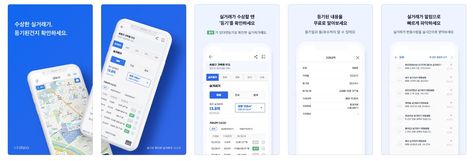 부동산 통합정보 어플! 디스코에 대해 알아봤다. 디스코에는 이렇게 많은 정보를 한눈에 볼 수 있게 제공하고 있다.