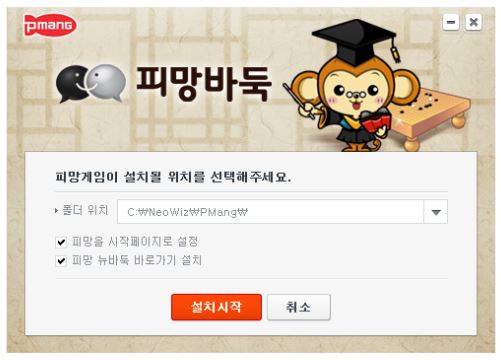 피망바둑을 설치하기 위해서는 피망 바둑으로 들어가셔서 회원가입 혹은 로그인 후 대국장 입장하기를 클릭하시면 인스톨러를 설치하실 수 있습니다.
