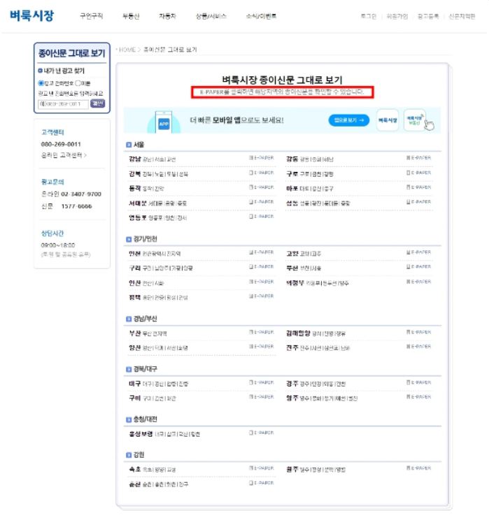E-PAPER라는 이름으로도 알려져 있고, 전국 25개 지역별로 발행되는 벼룩시장의 종이신문을 PDF 형식으로 제공하고 있어요. 따라서 원하시는 지역의 신문을 선택하여 특정 날짜의 신문을 볼 수 있습니다.